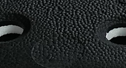 金型内で異原料を成形する場合、均等に層(黒)を作るのが難しく試行錯誤が続きました。 また、表面の色にも問題(色ムラ)が発生。